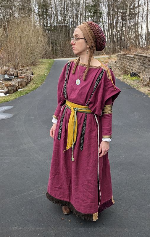 This one is part of my “Buy Nothing” outfit and was assembled entirely from materials I already had, including a knitted & crocheted hair cover that I made for modern wear. I intend to make some more authentic ones eventually, but this was a nice way to try out a concept and look.