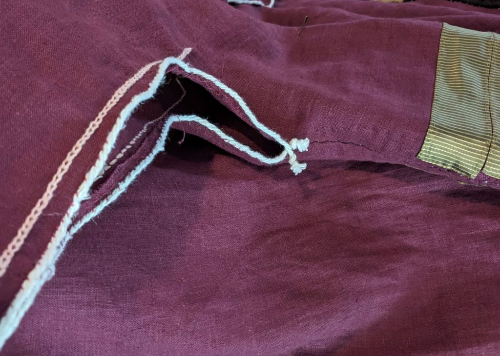 For my tunic, I used linen thread pulled from the fabric to sew the triangles down so that the stitches would blend in on the outside of the sleeve.
