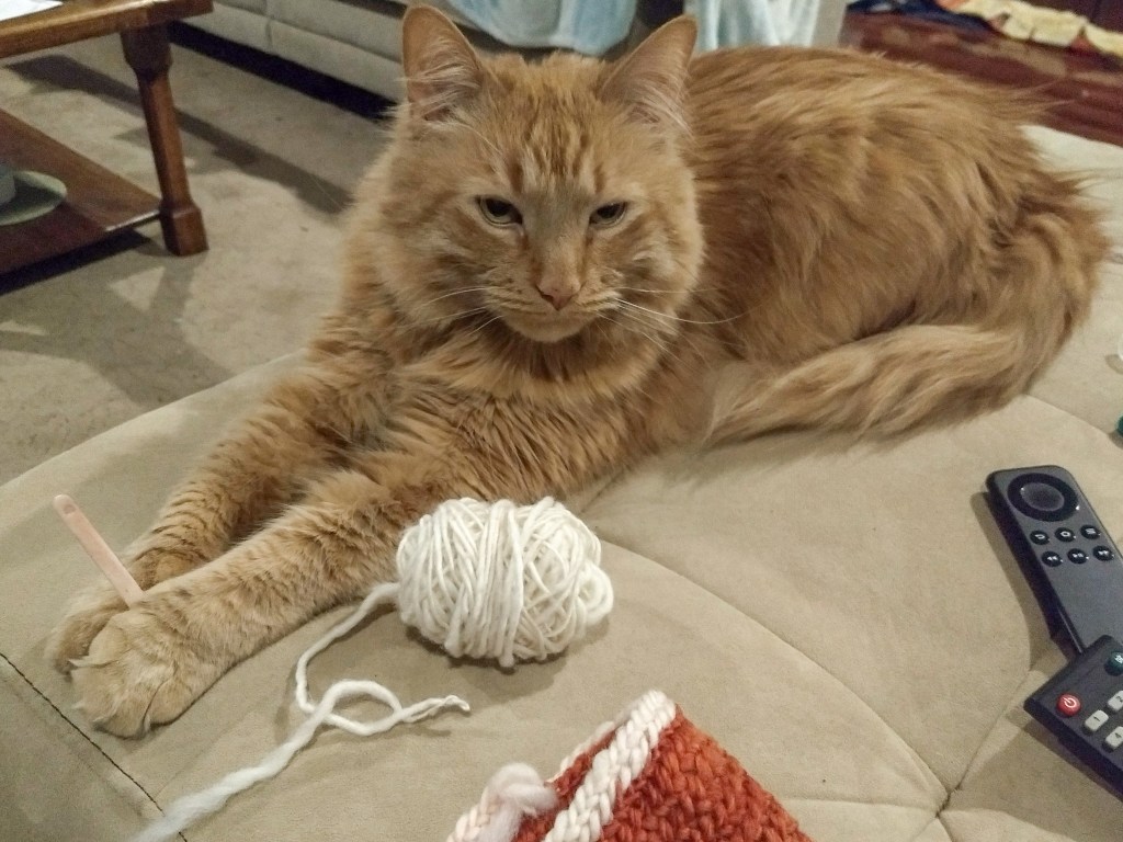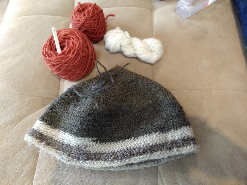I took a hat I had made him previously for “repair” (which it did need) and used it as a sizing guide for the new hat.